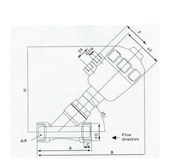 2, easy to install: Angry to accuse of head can make 360 ' rotate , only allow location switch permitted 360 even ' rotate. Can install one to two limit location switches conveniently . 3, an advanced pneumatic controller : Thicken the outer cover of engineering plastics, it is safe and reliable. The low piston structure that wears and tears, the capacity is great and low consumption tolerance. The inside component is lubricated by oneself, non-maintaining. 4, have many kinds of control methods: Chang Kai , often closing, pair is moved . 5, require smaller pneumatic execution device : The fluid flows fashionably above the valve stem, make the head. 6, easy to join: MAMUR standard is joined , the embedded metal is connected. Smaller control head available. 7, the macrobiotic life leads the pole: The contract shape teflon of valve stem (PTEE ) is sealed, prevents the dirty thing from channelling into. Lubricate by oneself, non-maintaining. The valve stem is especially dealt with and soed as to ensure that best and regular, and can correct the position automatically . 8, the function of the anhydrous hammer : The fluid flows fashionably from the valve stem, water hammer (water shock power ) is absorbed. 9, advanced valve body organization: The flow is larger by 30% than the ordinary angle seat, the volume is smaller, the fluid flow state is more excellent. 316 valves of body of stainless steel, the teflon is sealed, is able to bear the high temperature, corrosion-resistant. The life-span is up to the L2000 series form function angle seat valve 7 million times to dismantle of simple structure , handsome in appearance , putly swiftly, the switch is fast, it is flexible to operate, fluid obstruction is small, use the advantage such as being safe and reliable. All steel one adopts the acidproof stainless steel material , the seal adopts the food silicon rubber or the polytetrafluoroethylene (PTFE) material, accord with the food hygiene norm. Extensively suitable for such numerous trades as food , making wine , beverage , dairy products , pharmacy of fine chemistry industry and bioengineering ,etc.. Apply to filling equipment , beer beverage , textile printing and dyeing , medical equipment , bio-pharmaceuticals , disinfect in sterilization , food industry , rubber and plastic machinery , warm open air conditioner etc.. Third, angle seat valve technical parameter: Main external dimension