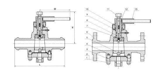 ¡ôProduct structural features: 2.Opening and closing of the valve is carride out while the sealed surface is taken off, so it will not cause abrasion on the sealed surface. 3.Its characteristic double-direction flow makes installation and use more convenient. 4.The materials of the parts and sizes of flanges can be reasonably configured according the actual operation condition of the requieements of the customersm,so as to meet the various needs of engineering. |