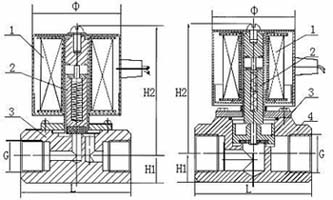 1、線圈 2、動鐵芯 3、閥杯 4、閥體 | | |