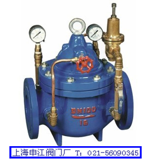 200X減壓穩(wěn)壓閥由主閥、導閥、針閥、球閥、微型過濾器和壓力表組成水力控制接管系統(tǒng)。使用時,當調定出口壓力后,能自動保持穩(wěn)定出口壓力。