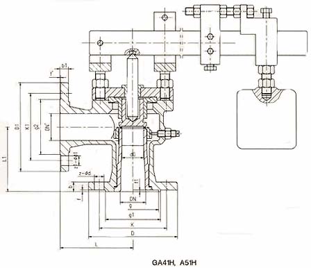 | GA41H、A51H型安全閥除杠桿(材料為碳鋼),重錘(材料為鑄鐵),其余材料均和A41H-16C型彈簧式安全閥相同。 |